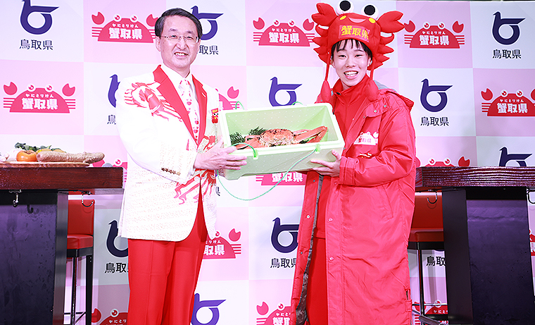 ガンバレルーヤ、入江聖奈、平井伸治鳥取県知事が「蟹取県へウェルカニ!」