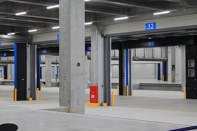 流山IC側から1号棟、2号棟と数え、4・5・6・7が建設中。画像は最も北側の8号棟「GLP ALFALINK 流山 8」で、地域の人たちが気軽に立ち寄れるテラスやカフェ、レストランなども併設。地域と共存する物流施設としての取り組みが試される、最先端物流施設のひとつ。
