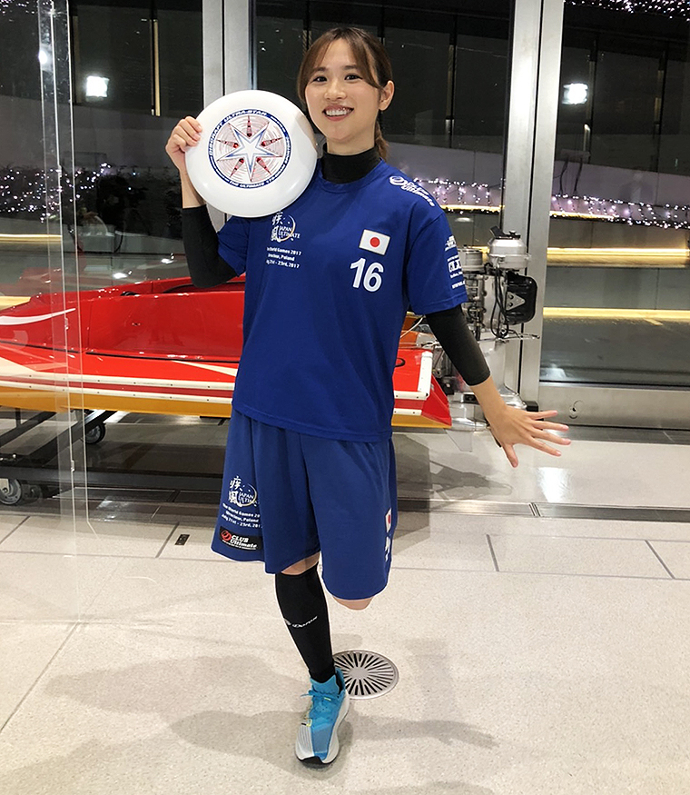 大学1年から始めたアルティメットですぐに頭角を現し、2014年に日本代表として初選出されると、ロンドンで開催された、「WFDF2016 世界アルティメット&ガッツ選手権大会」に出場し、女子日本代表として4位の成績。