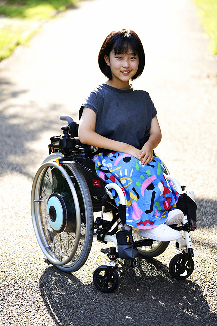 生まれつき下半身と左手に障害があり、普段は電動車いすでの生活をしている。