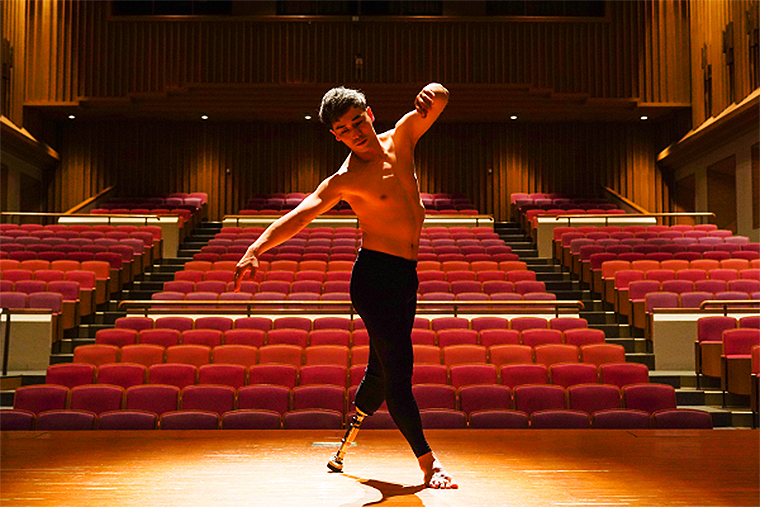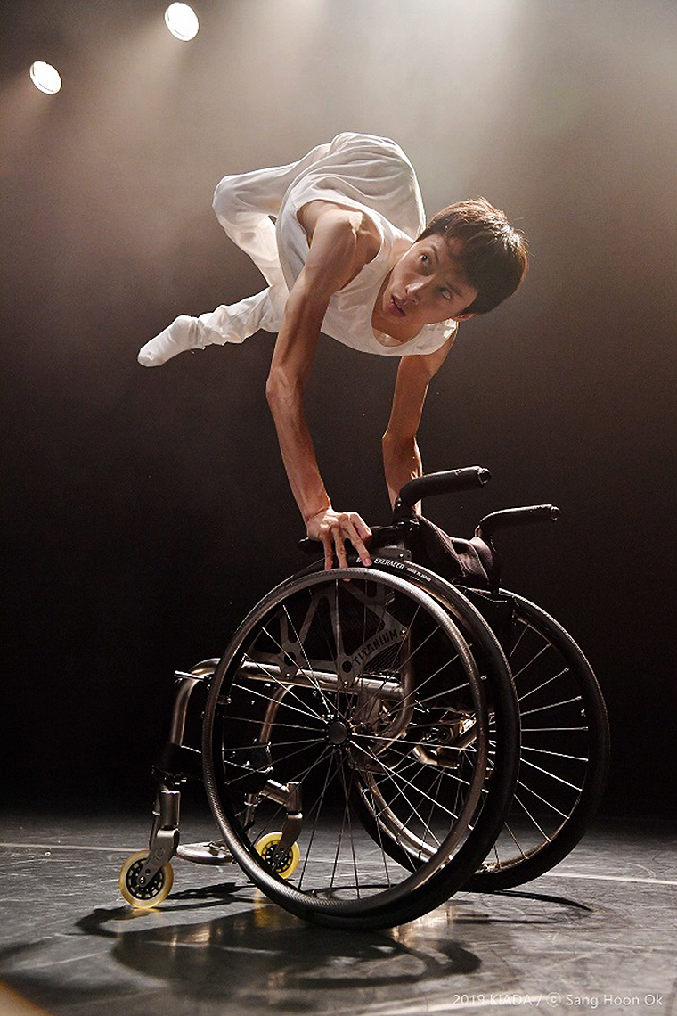脊椎の機能が損なわれる先天性の「二分脊椎症」を抱えながらも、車いすの上での逆立ちなど、アクロバティックなダンスを繰り広げる。