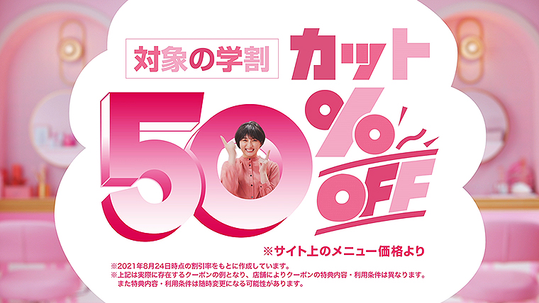 ♬こんなカットが、対象の学割50%オフ♬