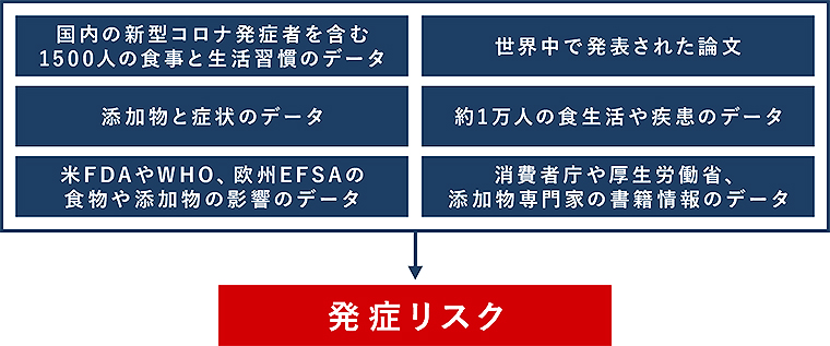 新型コロナに関して分析した結果、特定の添加物や食材を摂っていると発症リスクが高まることや、運動、入浴などの生活習慣と発症リスクの関係が判明。