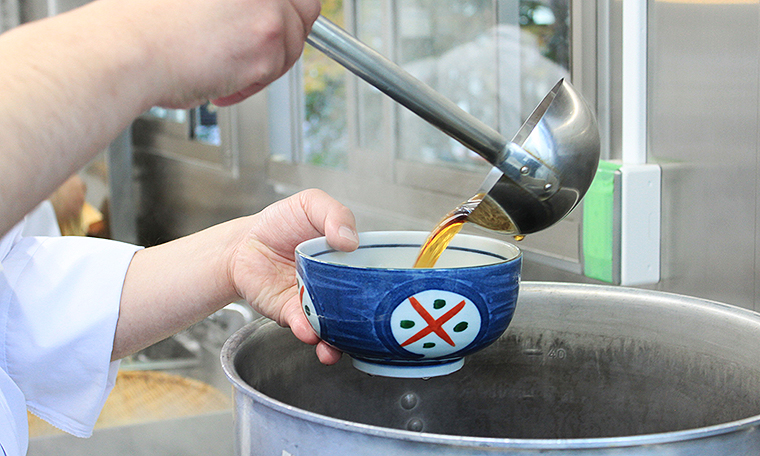 「のど越しと風味を一番おいしく感じられる二八そばです。かつおぶしから出汁を取って、前日から入念な下準備をして提供しています。本日はそうした手作りのできたてのおそばを、気持ちを込めてきっちりお届けできれば幸いです」