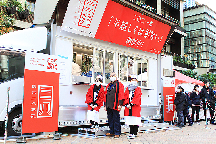 東京都麺類協同組合は、大晦日まであと10日あまりの12月22日、江戸生まれ、東京育ちの名物「二八そば」600食を、行き交う人たちに振る舞った。