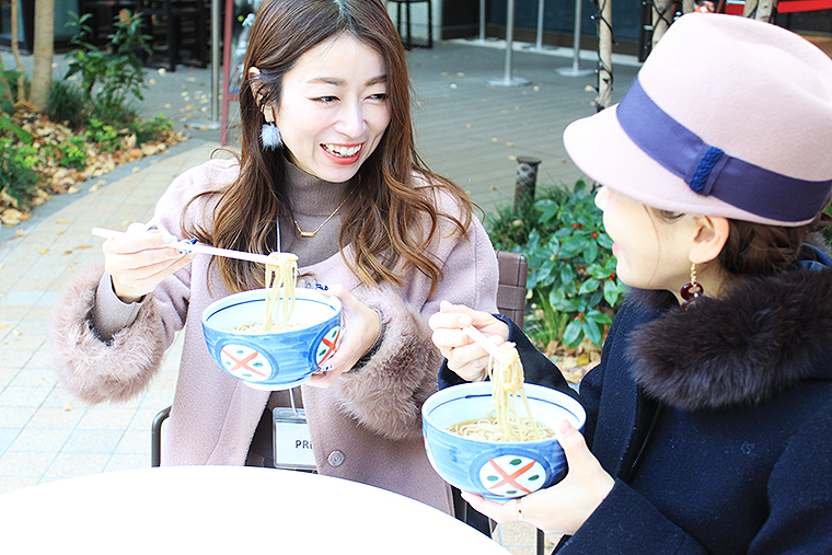 ―――そう語るのは、東京都麺類協同組合 田中秀樹 代表理事。ここ東京・日本橋コレド室町テラス広場に12月22日、蕎麦(そば)の湯気と、つゆの香りがたちのぼり、行き交う人たちが足をとめ、「江戸生まれ、東京育ちの伝統和食『東京二八そば』」を体感した。