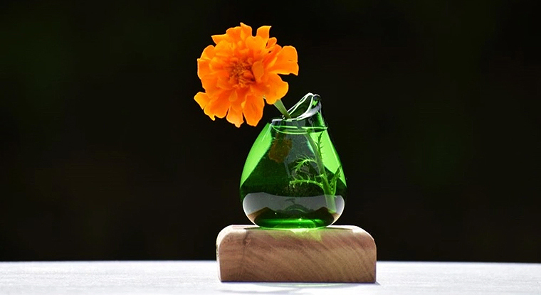 たとえば、吹きガラス工房 琥珀 は、100%廃ビンそのままの色を活かし、一切の着色をせず、沖縄・琉球ガラスの手法で作られたガラス作品を。再生ガラスの温かみや味わいが楽しめる。
