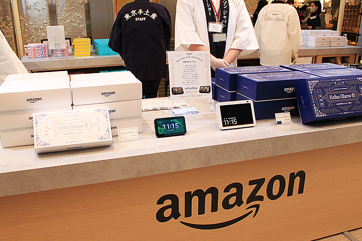 そして、東京駅改札内 B1イベントスペース「SQUARE ZERO」で12月26日(日)・27日(月)、11:00~20:00 の2日間、ポップアップショップ 『BEYOND THE DISTANCE』で、この「Echo Show 5」「Echo Show 8」を、2台セットを1台分の価格で販売!