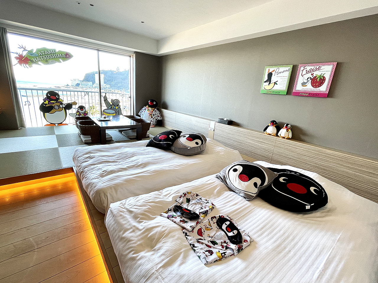 全室オーシャンビューの「熱海シーサイドスパ&リゾート」ピングーコラボルームは、モダン和洋室(定員4名)とアジアンルーム(定員3名)の2部屋限定。