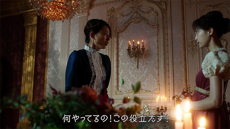 この動画では、あのドラマを想起させるような豪華衣装に身を包んだ小沢真珠が、後輩女優の度重なる失敗に怒りが収まらないという場面。