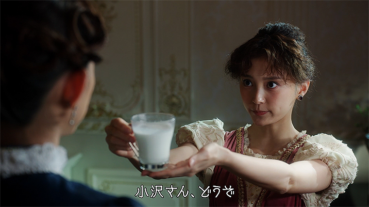 そんな小沢真珠にむけて、後輩女優が手際よくレンジで温めた「森永のおいしい牛乳」を渡すと……。