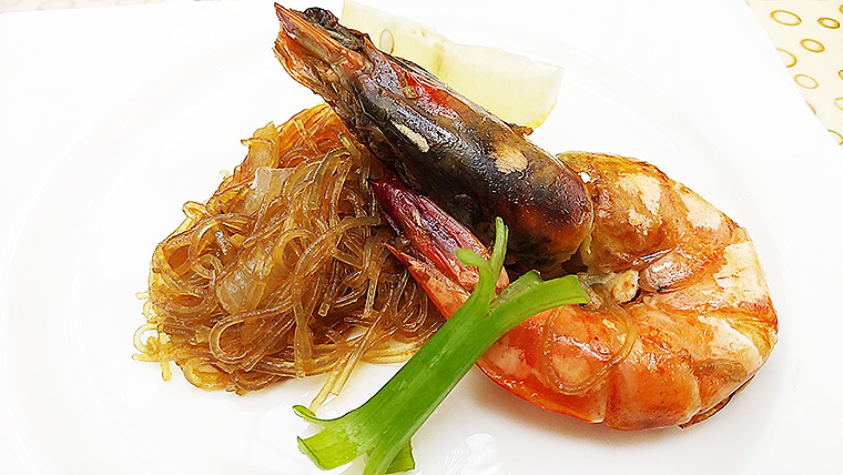 有頭エビと春雨を紹興酒やナンプラー、醤油等と一緒に炒め、仕上げた一品は、国内ではここでしか体感できないから、気になる人はシェラトン・グランデ・トーキョーベイ・ホテルへ!