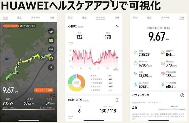 HUAWEI WATCH GT 3 は、登山YouTuberイタガキが絶賛するこうした機能のほかに、健康管理を可視化する機能も充実。