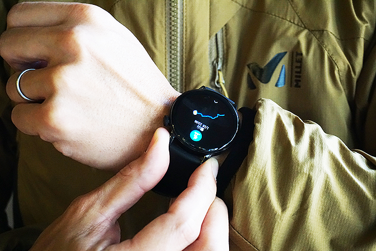 「また、内蔵された高度気圧計が、現在の気圧をリアルタイム監視し、急激な変化があった場合、振動で注意喚起してくれる機能もあって、登山がより一層、楽しく、安心して楽しめるようになる」