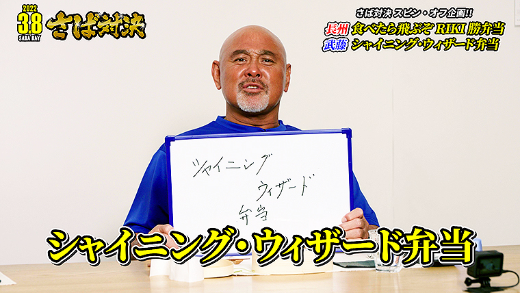 この対決、長州力が山田水産「さばカツ」応援団長に、武藤敬司が山田水産「さば照焼」の応援団長としてガチ勝負。