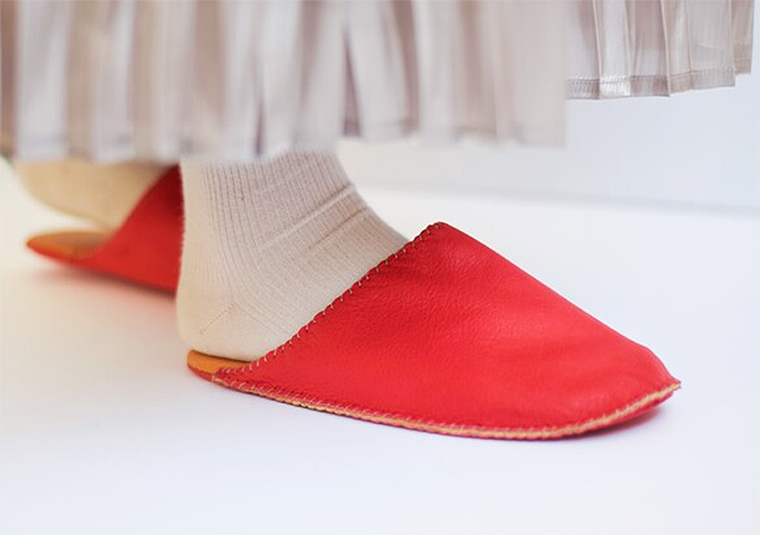 農林業被害を防ぐため駆除された天然の鹿革を使用。駆除された野生動物の革を無駄にせず資源として使う事で、自然と人との繋がりを感じるサステナブルなルームシューズ。