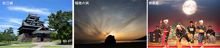 新幹線と特急やくもで博多・大阪から4時間、飛行機で東京から2時間半、縁結びの国―――島根県 松江市・出雲市・安来市。