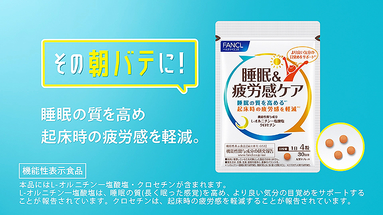 機能性表示食品「睡眠&疲労感ケア」は、ファンケルの通信販売・直営店舗で新発売したサプリメント。