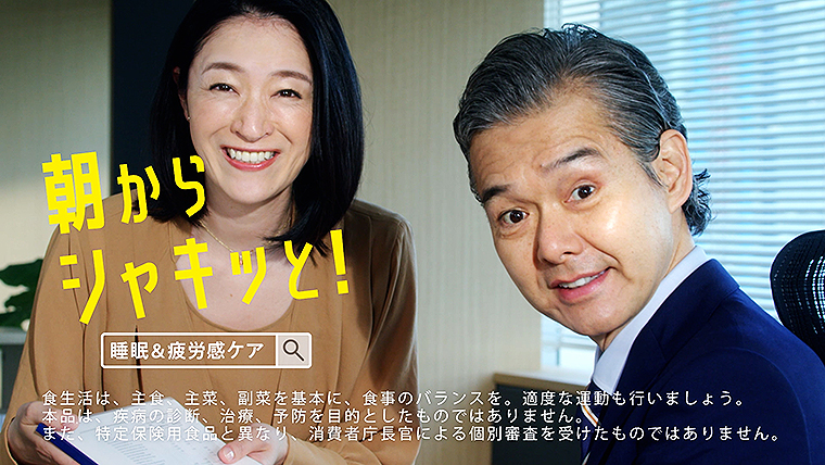 出演は、渡部篤郎、おいでやす小田、しゅはまはるみ。ファンケルの調査によれば、日常生活で疲労感を感じている人のうち、約6割が「朝起きた瞬間から疲労感を感じる「朝バテ」がある」という。