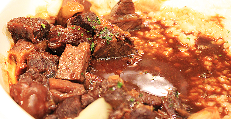 じっくり煮込んだ「オージービーフホホ肉の煮込み」