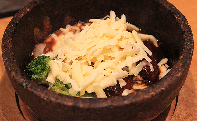 チーズかけ放題 石焼煮込みハンバーグ(690円 税込759円)は、旨味の強いモッツァレラのチーズと香りの強いレッドチェダーを、熱々の煮込みハンバーグの上に、なんとかけ放題! 思う存分、たっぷりかけて味わってみて。