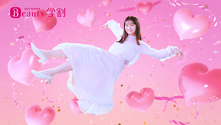 彼女は今回の第3弾CM「ホットペッパービューティー学割 美容室代浮いちゃいます」で、ピンクのハートといっしょに「こ~んなに、浮いちゃいまーす!」とふんわり浮かんでニコッ。