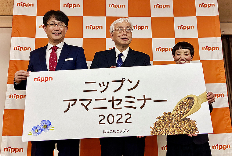 「アマニ油」「ローストアマニ粒」「アマニ油入りドレッシング 和風たまねぎ」「アマニ油入り マヨネーズ」「アマニ粒入り5穀ミックス」「アマニ油入りドレッシングシリーズ」など、多彩なアマニ商品ラインナップを展開するニップンは3月24日、アマニに関する最新情報を伝えるセミナーを開催。