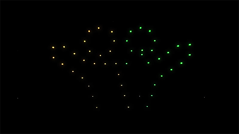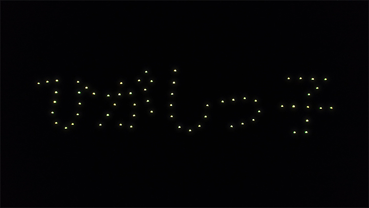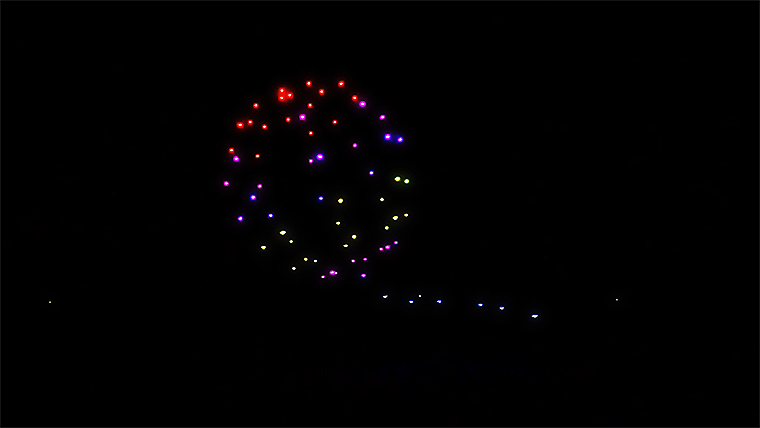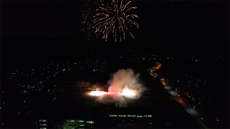 そう子どもたちがいっせいに大声でお礼をいうと、夜空にドローンが描く「アリガトウ」の文字―――。