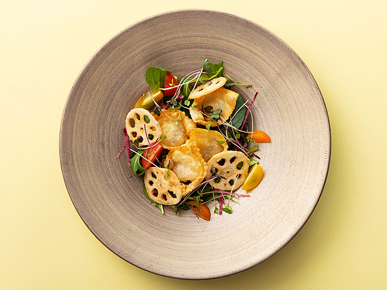 ・小鰯のフリット サラダ仕立て 岩国れんこんのガレット添え