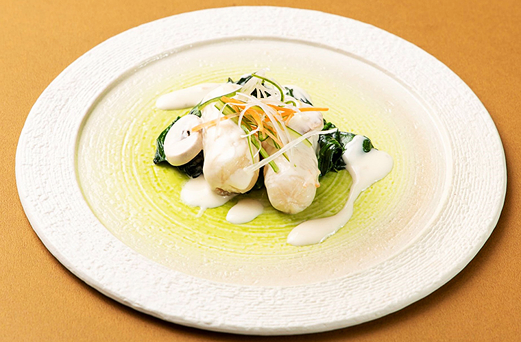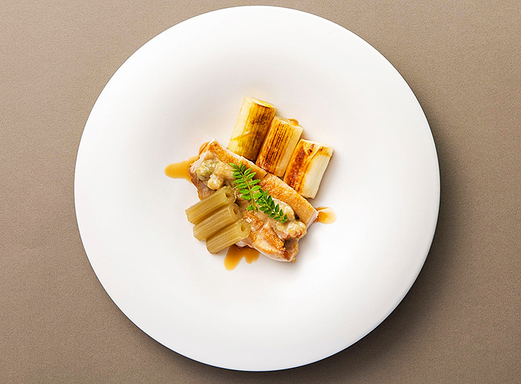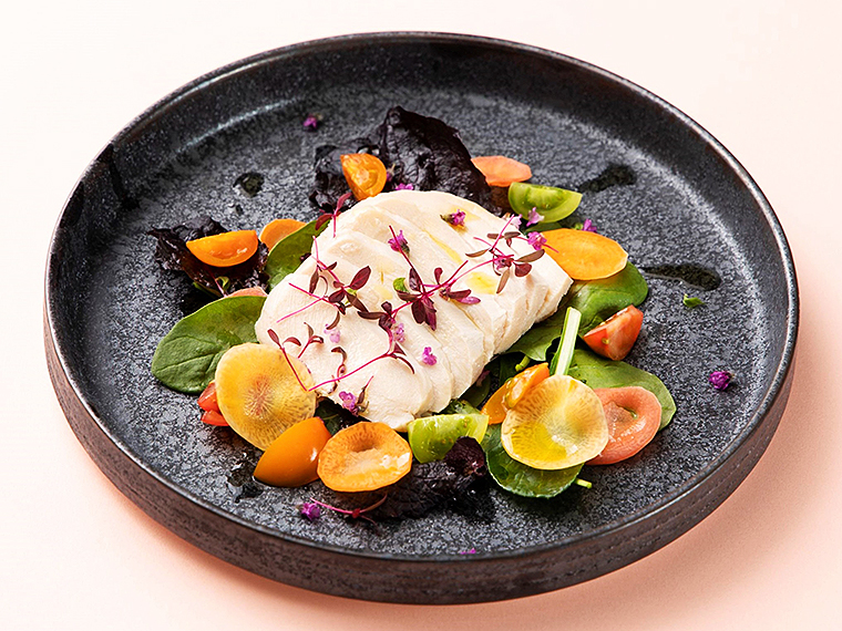 ・淡路鶏の柔らか蒸し、灘の酒粕と六甲味噌の香り