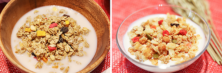 加熱調理不要で、ミルクやヨーグルトをかけるだけでかんたんに食べられるという点も、チェックポイント。さらに特長が↓↓↓