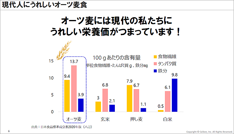 画像・資料は4月7日に都内で開催されたカルビー「いま注目の、オーツ麦市場勉強会」で公開されたもの