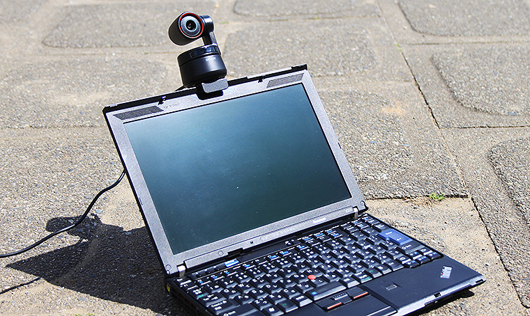 実際に、モノレール車両の前でノートパソコンのモニタ上に付属クリップで固定して撮影してみると、なめらか&しなやかに人物を追従してくれる。