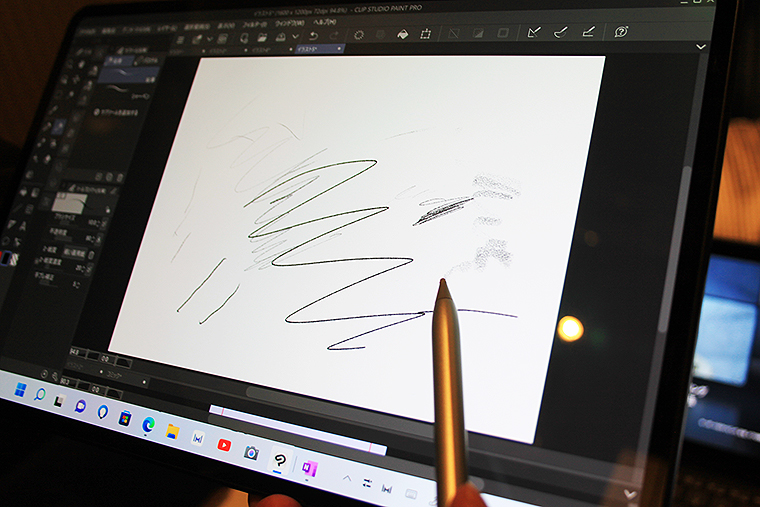 ペンで紙やホワイトボードに描く感覚で、打ち合わせ相手に図示できるのもいい。さらにタブルタップするだけで、スクリーンショットを撮れるので、オフィスワークやオンライン授業でみんなにその描画をすばやく共有できるのもうれしい。