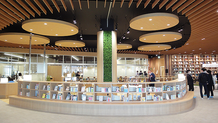 「おひさまテラス」には個性豊かなレンタルスペースや、ホテルのロビーのような自由にくつろげるオープンスペースがあるほか、地元食材を取り入れたこだわりのカフェレストラン、キッチンや防音設備の整ったミュージックスタジオ、おひさまテラスのために選んだ約6,000冊のライブラリー、大型の会議室など、さまざまなスペースがある。