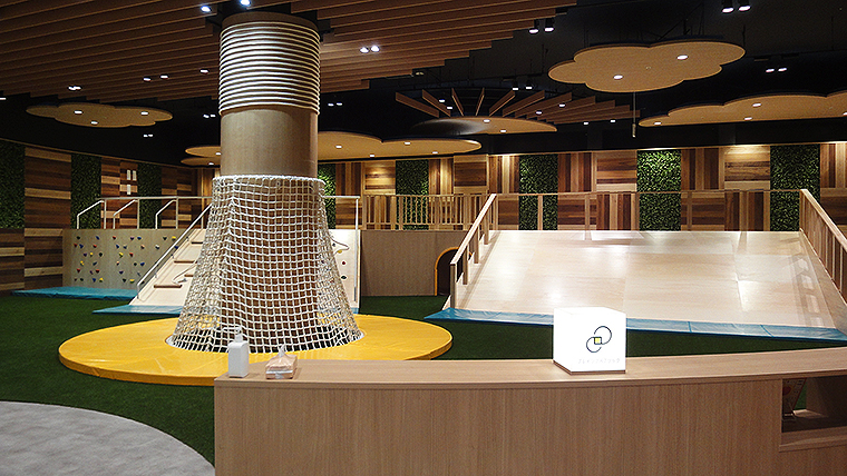 プレイングパブリックは、子どもたちが元気に遊べる屋内公園。すべり台やトンネルなどの遊具で、心と身体を育もう。