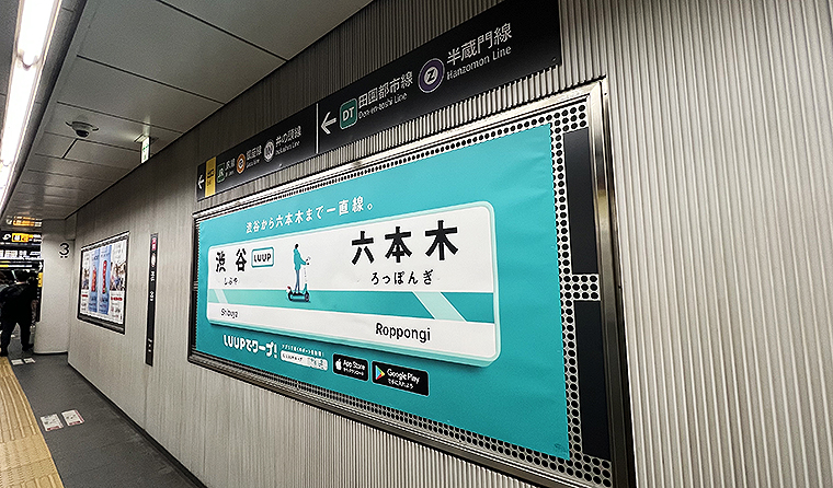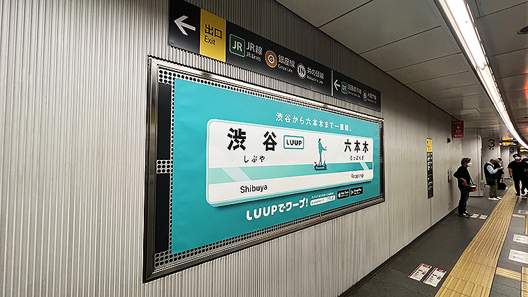掲出場所は、混雑しがちでユーザーから移動に手間がかかると意見が寄せられた東京・大阪エリアの電鉄14駅と、LUUPポート50か所。