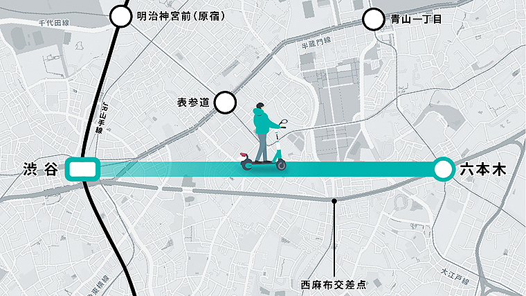 な、なんだこの駅表示は……!? たしか渋谷と六本木の間は、ひとつの路線で結ばれてない。