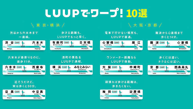 LUUP 公式おすすめの「LUUPでワープ!」ルート10選も公開! 掲載場所は?