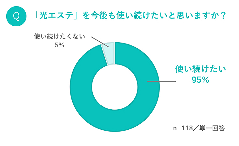 また、「光エステ」について、「今後も使い続けたいと思うか」を聞くと、実に95%のビジネスマンが「使い続けたい」と回答。