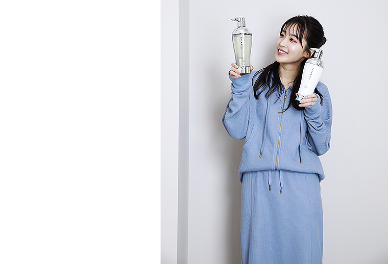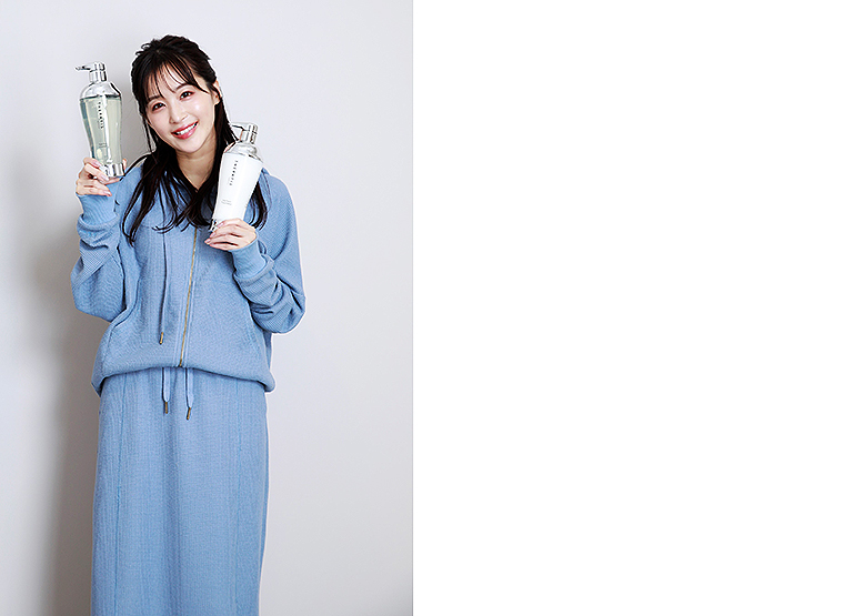 そんな休井にもヘアケアについて悩みがあることを告白。「わたし自身、もともとくせ毛で、寝ぐせに悩んでいたのですが、セラティスを使用してから朝の髪の状態が冗談なしにすごく良くて、大のお気に入りになっています」と。