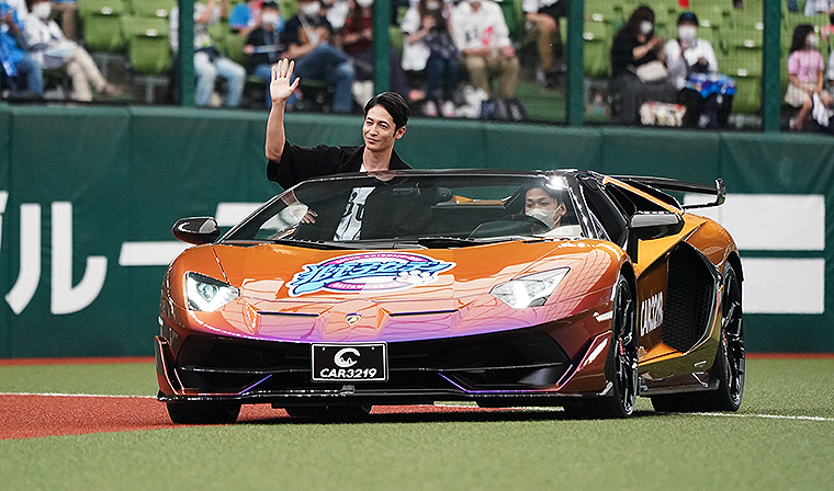 5月13~15日の 対 東北楽天ゴールデンイーグルス3連戦の2日め、5月14日に玉木宏がランボルギーニに乗ってマウンドに登場!
