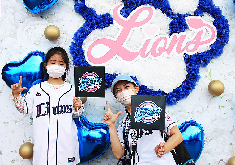 ライオンズファンの親子がフォトスポット前で行列をつくり、ファミリーやグループの楽しい思い出づくりも手伝った。