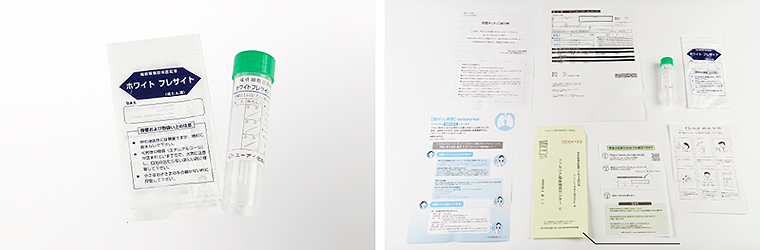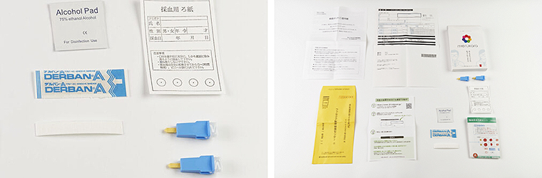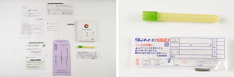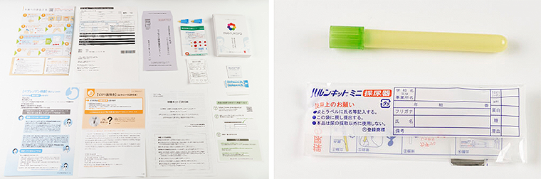 オンラインで購入後、検査キットが3~7日で自宅に到着。あとは都合のいいときに自分で検査内容に応じた検体をかんたんな操作で採取して、ポストに投函するだけ。