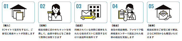 オンラインで購入、採取・返送・検査・結果郵送の5ステップ!