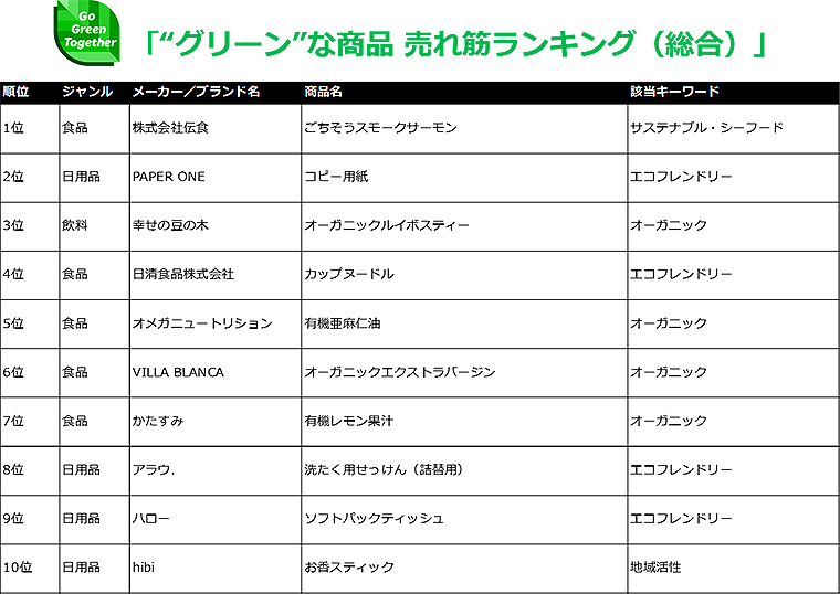今回のランキング発表は、「Go Green Together」プロジェクトの一環。