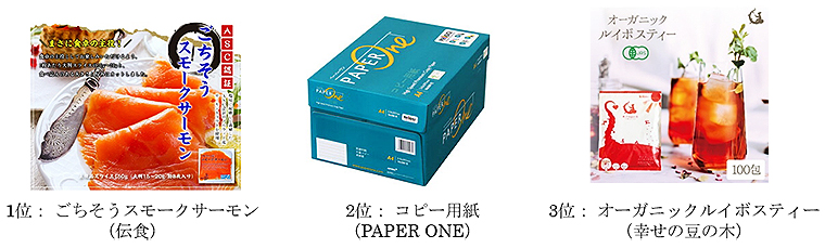 また、持続可能性に配慮して管理された森林の資源からつくられた「コピー用紙」や、パーム油の生産によって熱帯雨林やそこに生息する生物などに悪影響を与えることのないよう配慮してつくられた「洗たく用せっけん」などの日用品も、ランクインした。