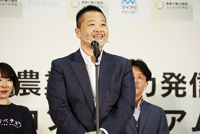 また、いま注目するロールモデル農業者、ベジLIFE!! 香取岳彦 代表、ROSE LABO 田中綾華 代表、たけもと農場 竹本彰吾 代表の3人がトークイベントに登場。農業の魅力についてこう伝えた。