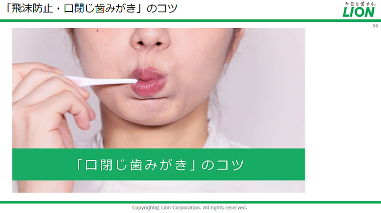 また、福田真紀 先生は、外出先での歯みがきについて、飛沫防止の観点から、「口閉じ歯みがき」を推奨。