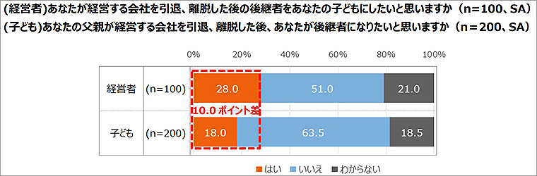 このことから、会社の後継者選びなどの事業承継について考えていくにあたっても、家族内でのコミュニケーションを深めていただく余地がありそうです。
